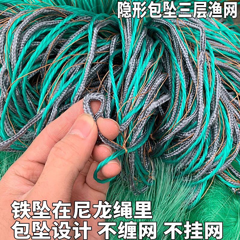 包坠绳三层渔网:坠子包在绳子里面,不挂网、不钻网、收放网轻松自如!